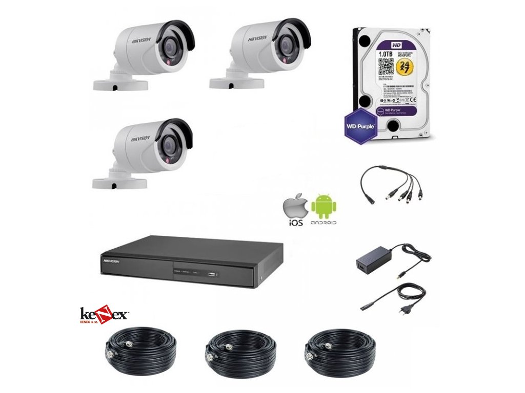 Sada zahrnující 3 Ks venkovní HD-TVI kamery s vysokým rozlišením HD720p Hikvision ds-2ce16d0t-irf (2.8mm)