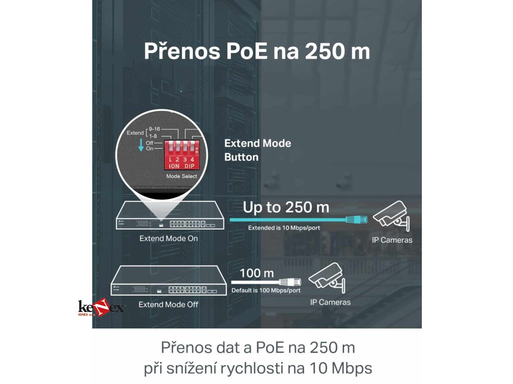 - Dosah přenosu dat a výkonu až 250 mv režimu Extend