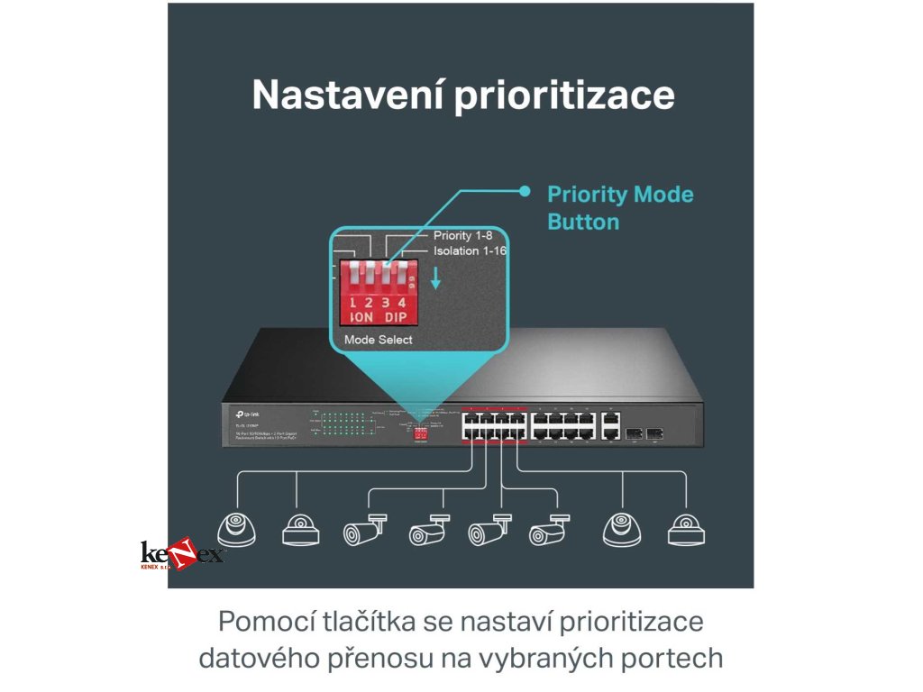 - Režim priority zajišťuje vysokou prioritu portů 1–2 a zaručuje tak kvalitu citlivé aplikace