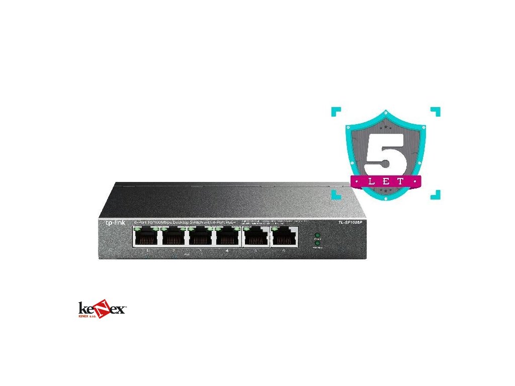 - 4 × porty PoE+ přenášejí data a energii na jednotlivých kabelech