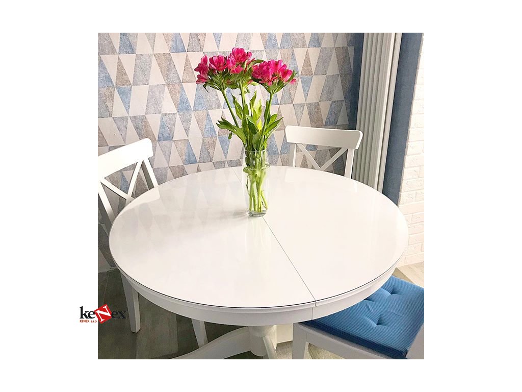 13. Transparentní měkké sklo chrání váš nábytek a na rozdíl od ostatních nátěrových hmot, nenarušuje strukturu a barvu stolu.