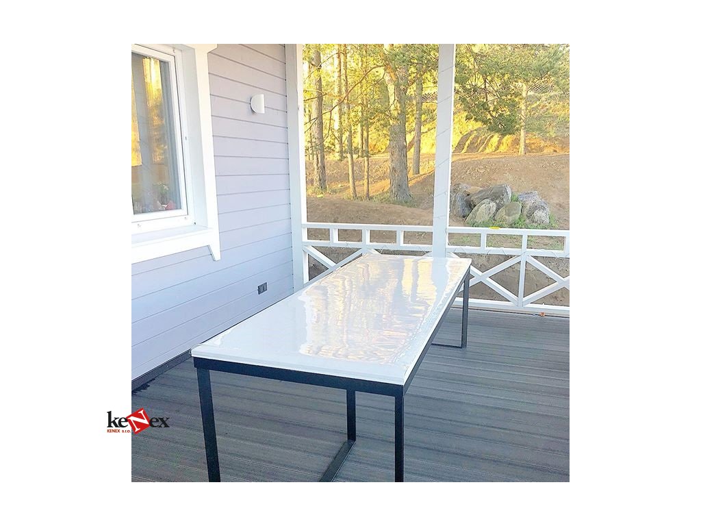 13. Transparentní měkké sklo chrání váš nábytek a na rozdíl od ostatních nátěrových hmot, nenarušuje strukturu a barvu stolu.