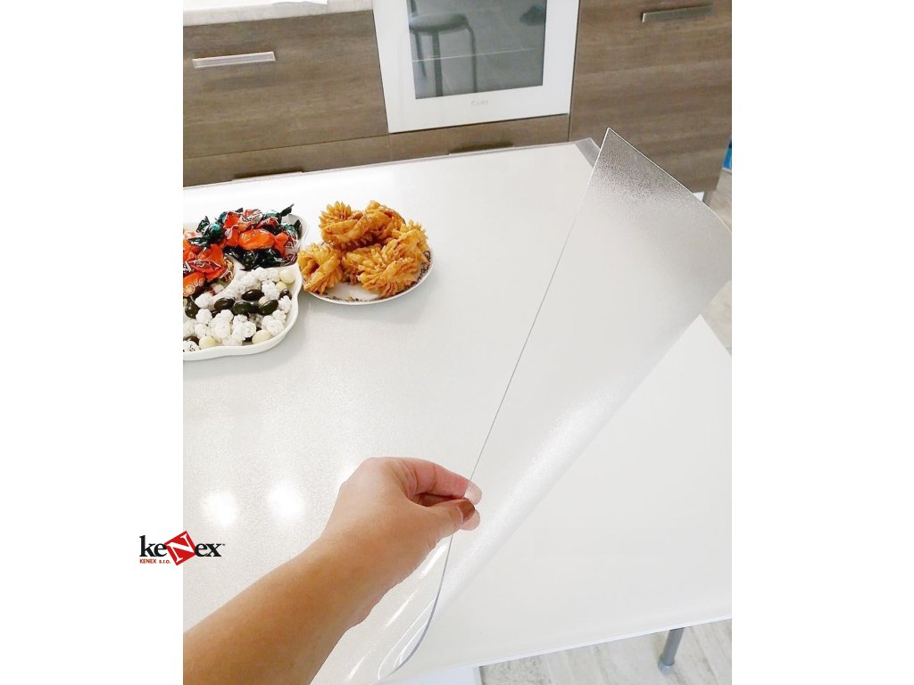 12. Odolná folie na stůl jakéhokoliv tvaru, nejenže chrání před poškrábáním, jídlem a tekutiny, ale ušetří čas a námahu! Nyní mají ubrusy, které potřebují neustálé praní a žehlení, mimořádnou a dlouhodobou alternativu! Tloušťka je 2 mm, maximální šířka je 120 cm.