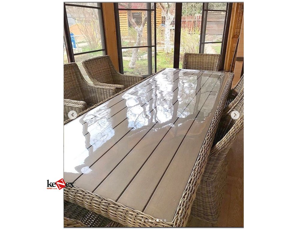 13. Transparentní měkké sklo chrání váš nábytek a na rozdíl od ostatních nátěrových hmot, nenarušuje strukturu a barvu stolu.