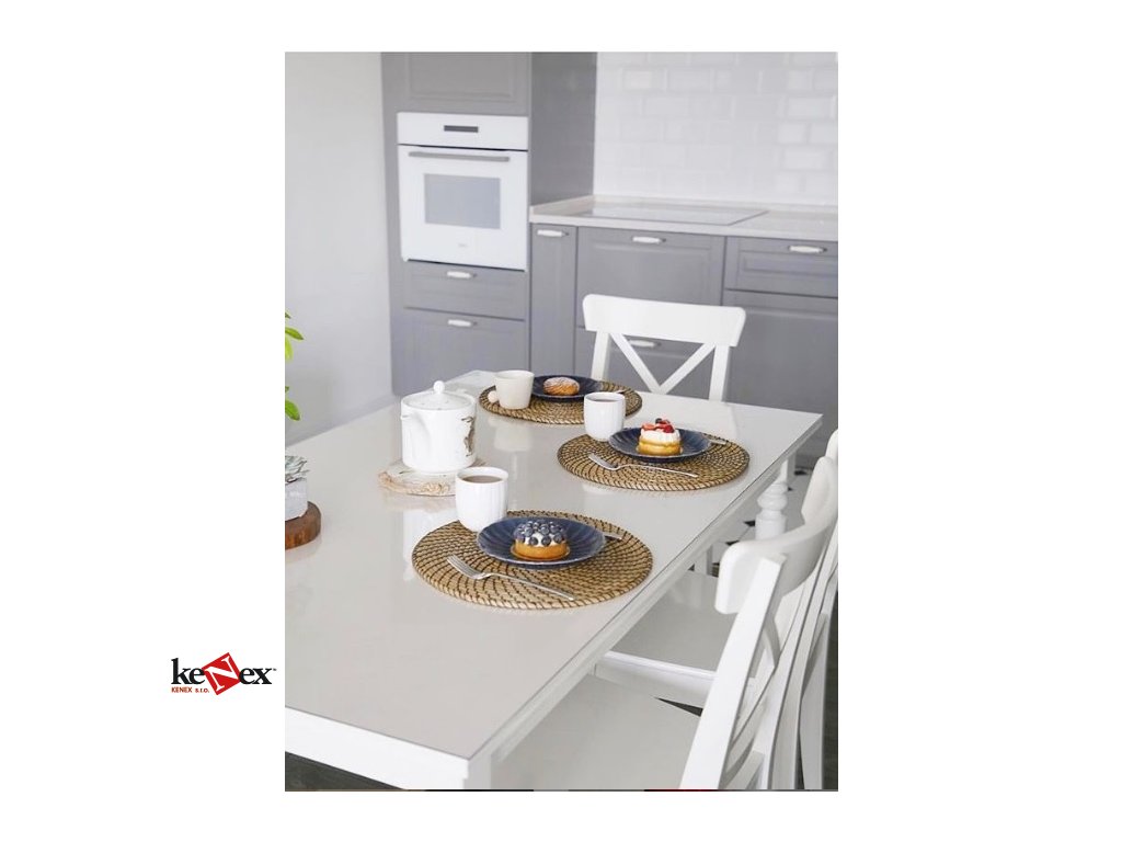 13. Transparentní měkké sklo chrání váš nábytek a na rozdíl od ostatních nátěrových hmot, nenarušuje strukturu a barvu stolu.