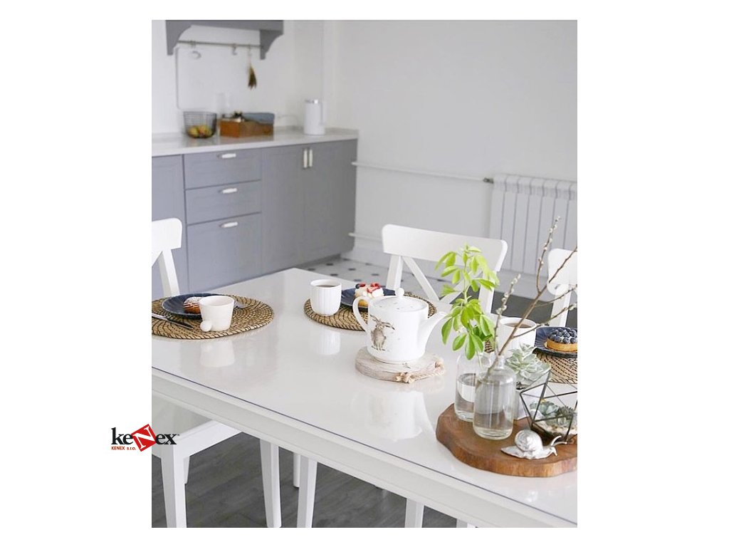 13. Transparentní měkké sklo chrání váš nábytek a na rozdíl od ostatních nátěrových hmot, nenarušuje strukturu a barvu stolu.