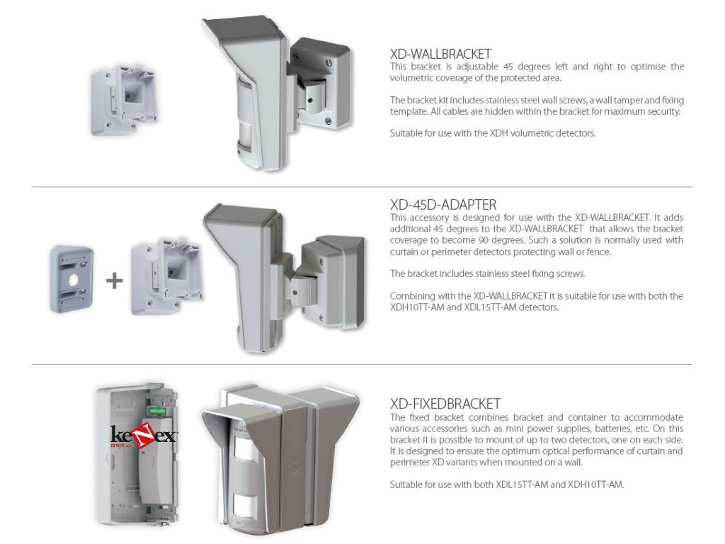 Držák na zeď pro XD řadu detektorů; rotace 45°; včetně tamperu; nerezové šroubky v balení; Montážní šablona; Polykarbonát.